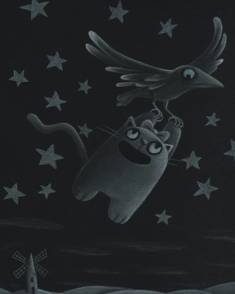 La gata, por encima de su miedo decidió alzar vuelo y las estrellas tocar.